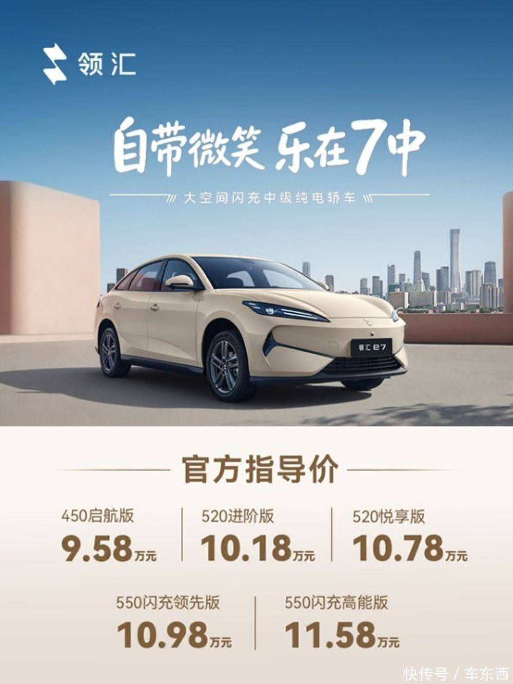 车东西4月15日消息,刚刚,比亚迪旗下领汇品牌车型e7正式上市,共推出5款车型,官方指导价为9.58万-11.58万元。