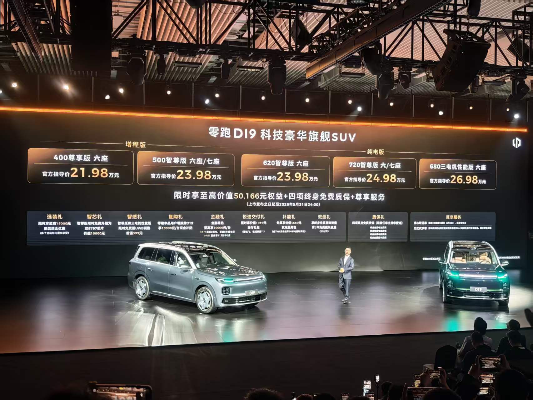 扎根10-20万级家用市场多年、靠全域自研站稳脚跟的零跑,带着旗舰D平台首款车型D19正式入局。增程版售价区间为21.98-23.98万元;纯电动版售价区间为23.98-26.98万元。