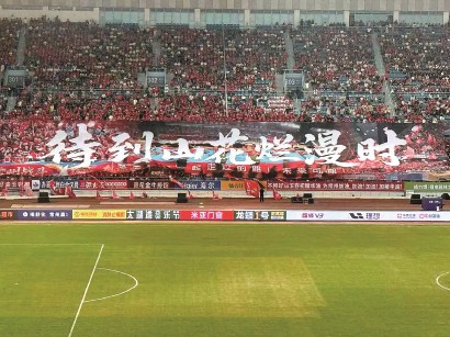 去年苏超常州队的最后一个主场,我也在现场。令我印象最深刻的,是赛后观众席上升起的巨型条幅,上书:待到山花烂漫时。彼时,常州队早已无缘淘汰赛。球迷们并未言明希望球队在未来取得怎样的成绩,只是静待花开。