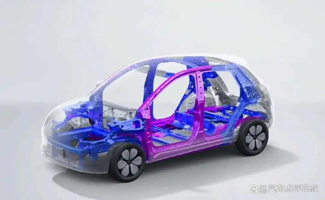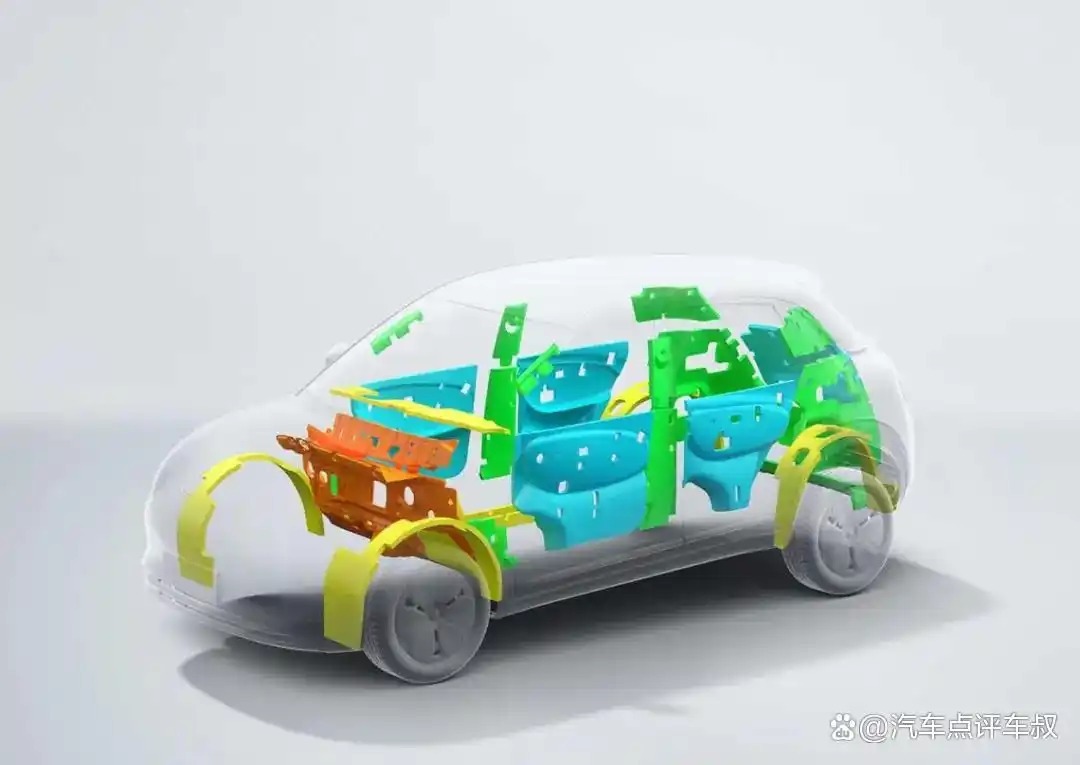 整车采用三纵九横五环笼式的车身结构,高强钢占比72%,热成型钢占比27%,全车21处采用1500MPa以上热成型钢。这套架构与“中国十佳车身”同源,意味着即便在A0级尺寸下,车身刚性依然达到了更高等级的标准。