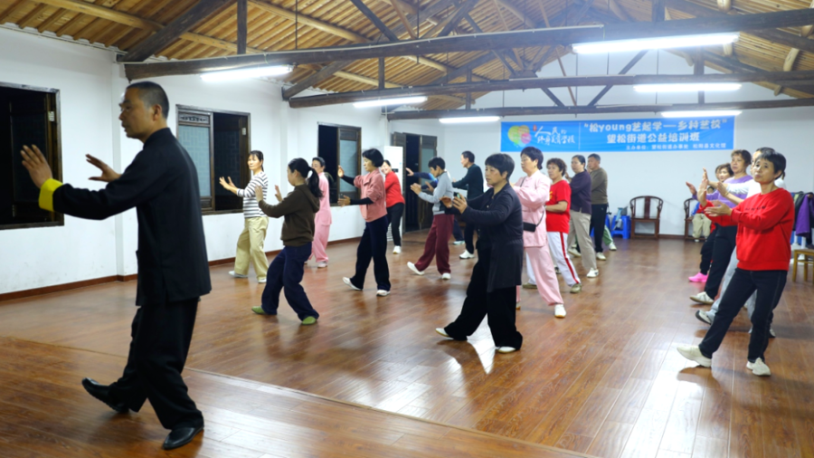 作为乡村艺校的忠实学员之一,望松街道五都阳村村民翁娇英有模有样地学起了太极拳。“一开始我就是看个热闹,后来上课的邻居越来越多,我也跟着一起去了。课是免费的,老师也专业,就在家门口,感觉收获挺大的。”翁娇英介绍,她连着参加了好几期课程,这次太极拳培训也是早早报了名,和大家一起上课既热闹,又可以强身健体。